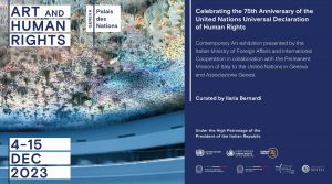 Nel quadro della campagna promossa dall’Ufficio dell’Alto Commissario delle Nazioni Unite per i Diritti Umani per celebrare il 75mo anniversario della Dichiarazione Universale dei Diritti Umani, l’Italia presenta una mostra di arte contemporanea intitolata “Art and Human Rights”, che sarà esposta al Palazzo delle Nazioni Unite di Ginevra dal 4 al 15 dicembre 2023, sotto l’Alto […]