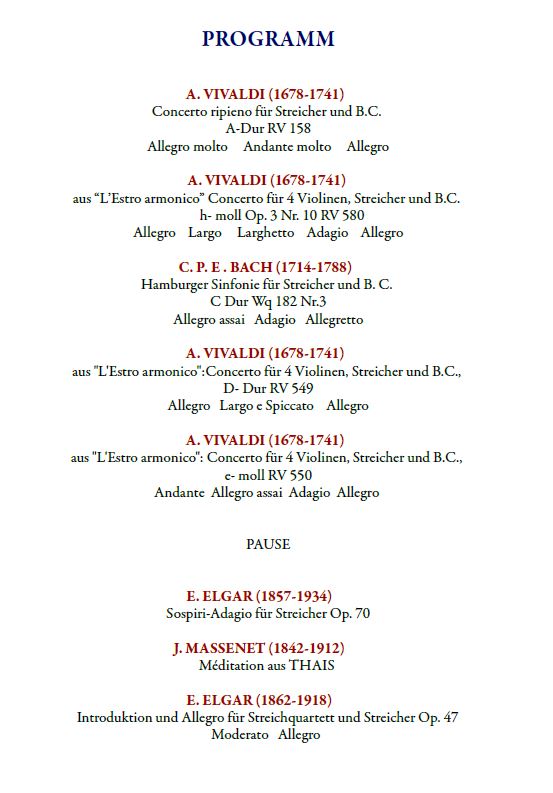 Orchester: GRUPPO STRUMENTALE VENETO F. MALIPIERO | Dirigentin: GABRIELLA CARLI | Konzertmeister: SEBASTIANO M. VIANELLO